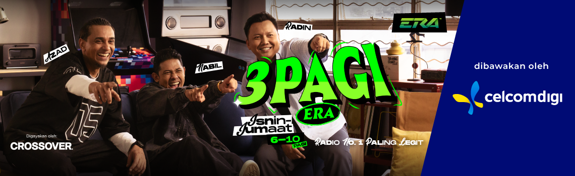 Perhatian ! Perhatian! Ada 3 barang baru dan baek dah datang. Luangkan masa setiap pagi korang, kita pekena semua yang trendy dan crack dari 3 Pagi ERA bersama Nabil, Azad & Radin setiap hari Isnin hingga Jumaat, 6 pagi hingga 10 pagi!